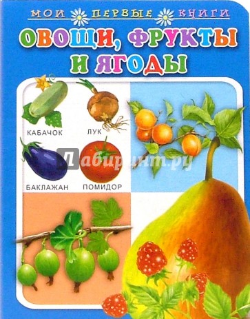 На каждой странице - картинка (овощи и фрукты) и слово (название).