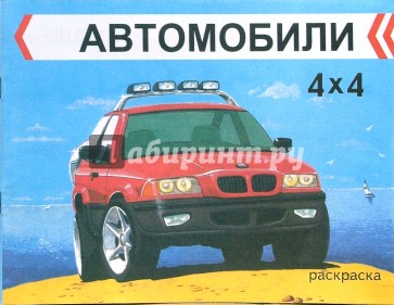 Раскраска с цветными образцами. В конце раскраски описаны некоторые модели автомобилей класса 4х4.