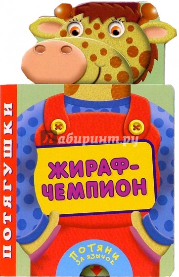 Этот славный жираф очень любит демонстрировать свою длинную шею и пижонские ботиночки. Потяните за язычок внизу книжки, и жираф с радостью покажет их вам, а заодно поведает забавную историю о том, как стал чемпионом.
