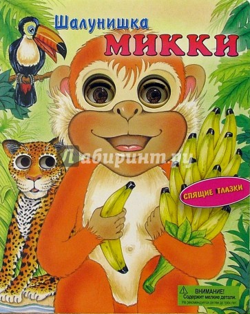 Книжка из картона с вырубкой и подвижными пластмассовыми глазками.