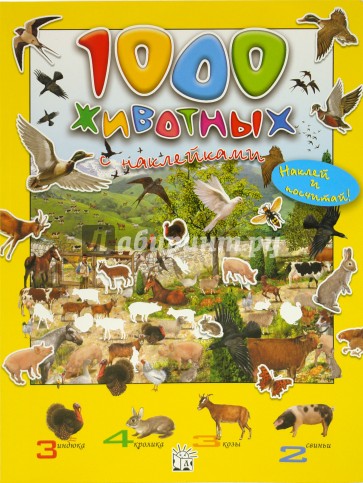 Книга "1000 животных с наклейками" создана на основе популярной серии "Живой мир планеты". На каждом развороте размещено красочное и детальное изображение какой-нибудь местности или среды обитания. Наклейки - птиц, рыб, зверей и насекомых - нужно правильно расположить на этих разворотах.