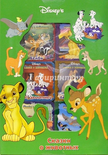 В этом наборе ты найдешь книги: "Бемби", "Король лев", "101 далматинец", "Леди и Бродяга", "Аристокоты", "Дамбо".