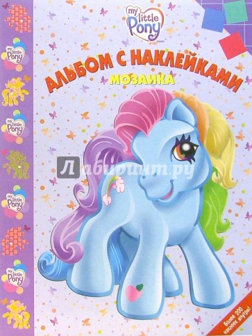 Открой этот замечательный альбом-мозаику и с помощью прилагающихся наклеек укрась портреты веселых Пони.
