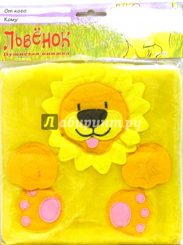 Пушистая книжка. Обложка обтянута искусственным мехом, аппликация "Львенок", сзади на обложке - хвостик.