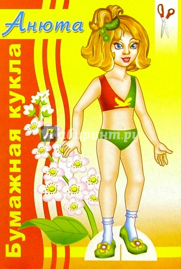 Вырежи и склей куклу! Установи ее на подставку, как показано на рисунке. Теперь можешь приступать к примерке модных нарядов, которые ты найдешь внутри книжки!