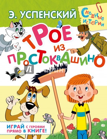 В нашей книжке знаменитая история Э. Успенского "Трое из Простоквашино" с любимыми героями дядей Фёдором, котом Матроскиным и Шариком. Ребята прочитают смешную историю, посмотрят любимый мультфильм и поиграют с героями в занимательные игры.