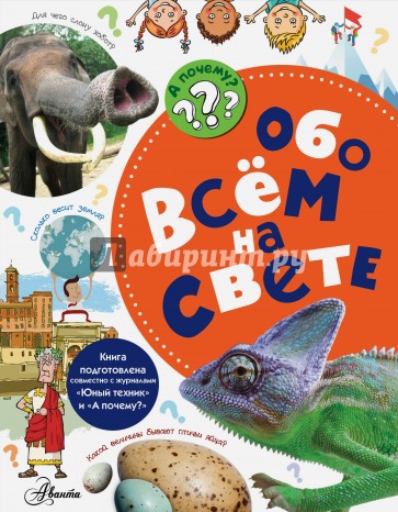 В книге В.И. Малова - писателя-популяризатора, журналиста и ответственного редактора журнала "А почему?" - "Обо всём на свете" собраны ответы на самые интересные вопросы о науке, технике, природе, искусстве, которые только может задать юный почемучка: какое дерево самое высокое, сколько километров до ближайших звёзд, когда погаснет наше солнце, как хамелеон меняет свой цвет… Издание подготовлено совместно с журналами "Юный техник" и "А почему?", имеющими гриф "Допущено Министерством образования и науки РФ к использованию в учебно-воспитательном процессе различных образовательных учреждений".