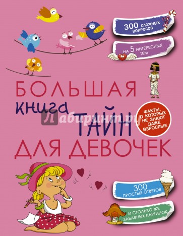 Необъятен мир девчоночьих секретов. В нем есть место всему: кулинарным изыскам и тайнам обольщения, загадкам психологии и рецептам хорошего настроения, домашним заботам и шумным вечеринкам. Из этой книги, как из копилки знаний, ты сможешь черпать бесценные секреты и полезные советы на каждый день. Здесь ты найдешь всё, что необходимо знать каждой девчонке. Как расположить к себе окружающих? Как провести "ревизию" в шкафу? Что нельзя делать за столом, а что - на пляже? Как собрать чемодан в дорогу и ничего не забыть? Как стать "своей" на отдыхе за границей? Как приготовить лучший в мире борщ? Как развить вкус, не потеряв своего стиля? Как из обычной тарелки сделать изысканный подарок? Настоящие девчонки всегда хотят бОльшего - именно для них и создана эта "Большая книга тайн".
