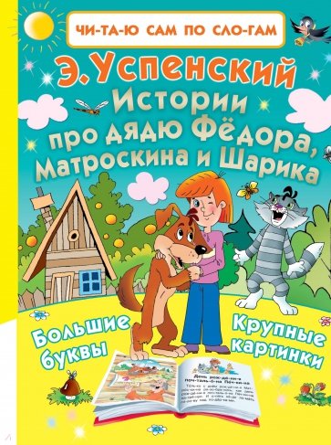 В книге "Истории из Простоквашино" Э. Успенского собраны коротенькие истории про знаменитых жителей не менее знаменитой деревни - дядю Фёдора, кота Матроскина, пса Шарика и почтальона Печкина. В книге большой шрифт, все слова разбиты на слоги с ударениями, большие цветные картинки - всё это поможет детям, которые только начинают читать, самим познакомиться с этими героями. Впервые малыши смогут сами прочитать по слогам о весёлых приключениях друзей. Книги серии "Читаю сам по слогам" помогут детям полюбить чтение и на всю жизнь полюбить классиков детской литературы.