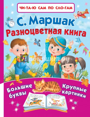 "Разноцветная книга" С.Маршака станет отличным подарком детям, которые уже знают буквы и слоги. Ведь в этом сборнике знаменитых стихотворений очень крупный шрифт, все слова разбиты на слоги с ударениями и большие картинки, чтобы было интереснее читать!