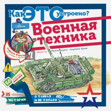 Книга "Военная техника" расскажет и покажет, как устроены ракетные войска: Тополь-М, командный пункт ракетного полка, стартовая позиция баллистических ракет шахтного базирования; военно-морской флот: тяжёлый атомный подводный крейсер "Дмитрий Донской", база подводных лодок в Балаклаве, авианосец "Адмирал Кузнецов"; бронетанковые войска: танк Т-90М, активная броня, бронетанковые снаряды; военно-воздушные силы: вертолёт КА-50, МИ-28, самолёт СУ-30, МиГ-29 и многое-многое другое.