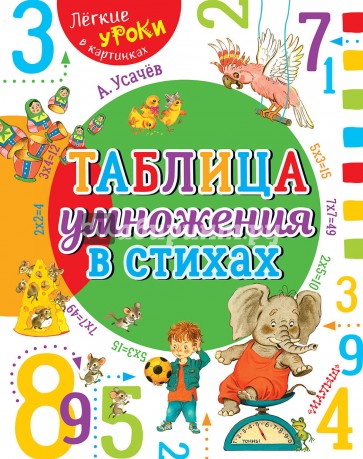 Знаменитый детский поэт А. Усачёв решил помочь детям в сложном деле – выучить таблицу умножения. Он сочинил маленькие весёлые четверостишия и двустишия на каждый пример. Строчки этих стишков мгновенно запоминаются, и ребята быстро и легко освоят эту математическую премудрость! А чтобы читать и запоминать было ещё веселее и проще, известные художники С. Бордюг и Н. Трепенок нарисовали замечательные иллюстрации к каждому примеру!