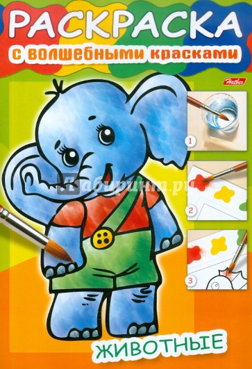 Серия "Раскраска с волшебными красками" от Издательства "Хатбер-Пресс" специально разработана для самых маленьких. В книжке А4 формата на скобе подшит блок, по периметру которого вверху расположен трафарет с сухими красками из четырех самых популярных цветов: красного, желтого, зеленого и синего.