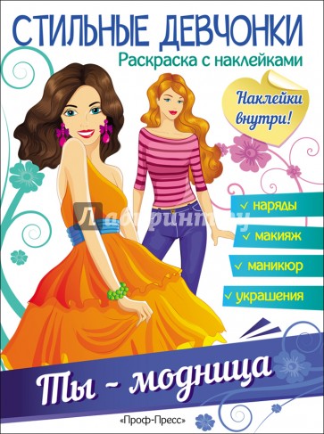 Если ты юная модница, то эта замечательная книжка для тебя! В ней ты сможешь подбирать и наклеивать девчонкам ультрамодные наряды, а также раскрашивать одежду, придумывая неповторимые сочетания цветов. Помоги моделям создать стильные образы для дефиле, фотосессии и конкурса красоты!