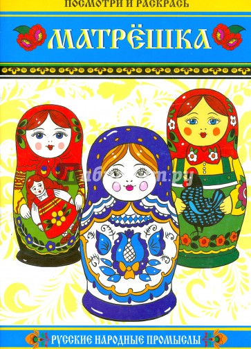 Книжка-раскраска с цветными образцами "Матрешка".