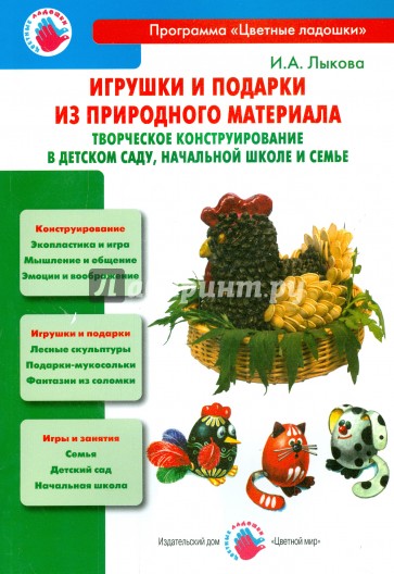 Учебно-методическое пособие раскрывает современный взгляд на конструирование из природного материала как вид детской дизайн-деятельности - экопластику. Поможет создать творческие ситуации и организовать образовательные проекты для конструирования детьми оригинальных игрушек, подарков, сувениров, предметов интерьера из различных природных материалов (шишек, желудей, ракушек, осенних листьев, соломки, глины, соленого теста и др.). Включает практические материалы в форме мастер-классов, технологических карт, иллюстраций, фотографий.