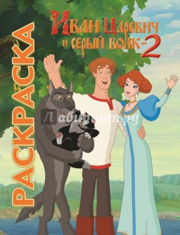 Раскраска по мотивам мультфильма "Иван Царевич и Серый Волк 2". Каждая страница - картинка из мультфильма с подписями-комментариями.