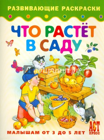 Эта веселая книжка-раскраска познакомит малыша с цветами и фруктами, которые растут в саду.
