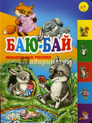 Книжка-картонка для малышей. Русские народные песенки-колыбельные. На каждой странице вырубка - маленькая картинка с изображением сказочного героя.