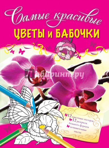 Эта книга представляет собой чудесное сочетание красочных постеров и плотных страниц для раскрашивания, на которых раскраски сопровождаются интересными фактами о цветах или бабочках. Раскраски в книге собраны довольно сложные и не только реалистичные, но и декоративно-орнаментальные - они наверняка понравятся юным художникам, дадут им возможность продемонстрировать свою технику и чувство цвета.
