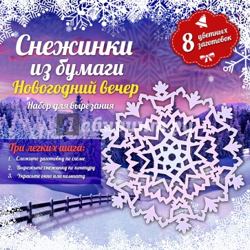 Новогодний набор сказочных снежинок. В комплекте восемь различных моделей со специальной разметкой для успешного создания красивых праздничных снежинок, а также рекомендации по вырезанию и копированию схем. Разнообразие видов, удобный формат, пошаговая инструкция.