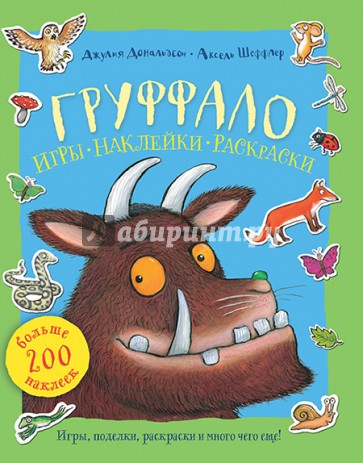 В этой страшно большой и страшно интересной книге по мотивам сказки "Груффало" вы найдете смешные игры и развивающие задания, раскраски и разрисуйки, головоломки, игральные карты Груффало, кулинарные рецепты, которые по силам и мышонку. А также поделки, гирлянды, украшения и 200 наклеек, которые можно использовать повторно, а значит, после выполнения всех заданий их можно будет наклеить на холодильник, мамин "айфон", дневник старшей сестры и на все другие подходящие места.