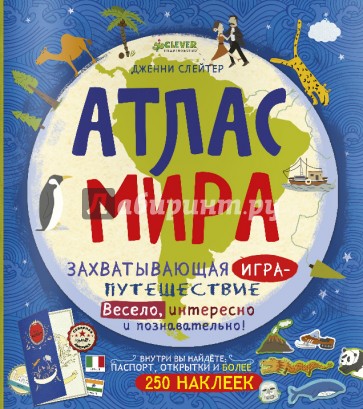 Уникальное интерактивное издание - энциклопедия "Атлас мира" понравится наверняка каждому ребенку, ведь помимо атласа, здесь найдется все, что только любят дети в возрасте от 5 до 7 лет. Это и наклейки, и красивые открытки и даже паспорт путешественника, в котором спрятано много интересных заданий! Преимущество издания - обучение ребенка в виде игры. При помощи книги ребенок запоминает столица стран мира, флаги и жителей всего земного шара.