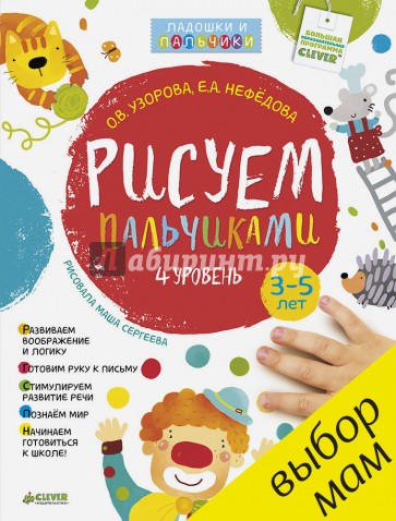 Как правило, движения детей к 3 годам становятся более точными: они могут уже рисовать не только хаотичные точки, а группы и цепочки точек, ставить точки в заданных местах; не только печатать пальчиком, но и проводить им линии различной длины и траектории, дорисовывать линии и рисовать по образцу. Поэтому мы постарались подготовить книжку так, чтобы маленький художник мог попробовать себя в разных видах рисования, а в итоге всегда получал красивый готовый рисунок.