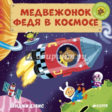 Увлекательная книжка-игрушка с движущимися элементами про медвежонка Федю, который летит на Луну вместе со своими друзьями.