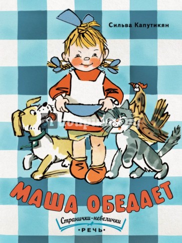 Села Машенька обедать, а тут и гости пожаловали: верный пёс Арапка, кошка Мурка и курочка Ряба. Каждый из них славно потрудился - не забыла ли Маша, что пора и помощников накормить?
