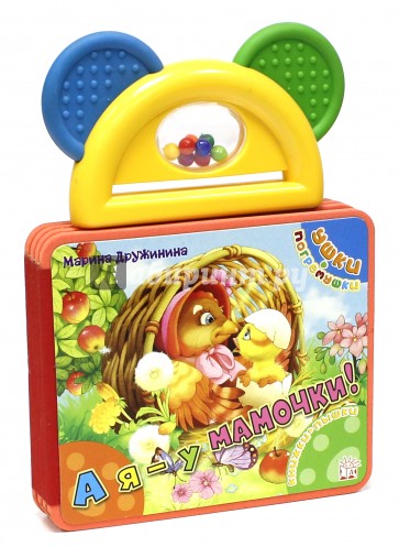 А еще пластиковая погремушка и рельефный резиновый прорезыватель в виде ушек.