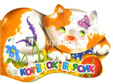 Яркая книжка в форме котенка познакомит ребенка с приключениями маленького Барсика и расскажет о том, какие звуки издают животные.