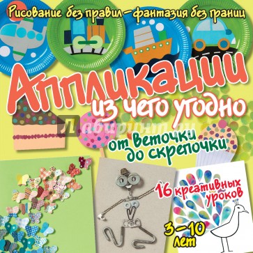 В книге "Аппликации из чего угодно: от веточки до скрепочки" уже в самом названии всё сказано. Добавим только, что шестнадцать креативных уроков откроют тайну простого волшебства: как с помощью кусочков бумаги, ткани, ниток или пуговиц создать свой первый маленький шедевр.