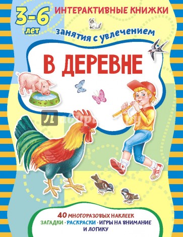 В книге "В деревне" 40 многоразовых наклеек и более 50 заданий, направленных на получение базовых знаний по теме.