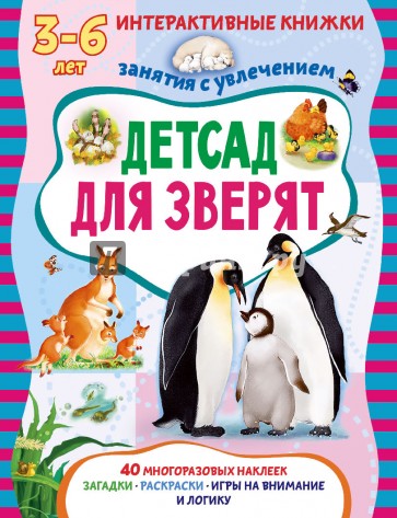 В книге "Детсад для зверят" 40 многоразовых наклеек и более 50 заданий, направленных на получение базовых знаний по теме.