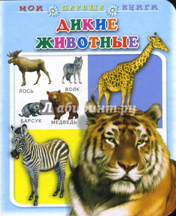 Картинки, изображающие диких животных. Под каждой картинкой - название животного. Каждое слово разделено на слоги для удобства прочтения маленьким ребенком.