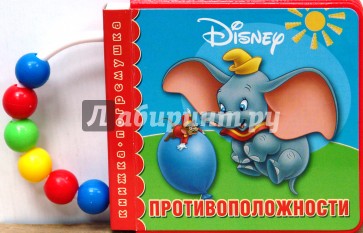 Книжка-погремушка с картонными страницами. Сбоку прикреплена пластиковая ручка с нанизанными на нее цветными шариками.