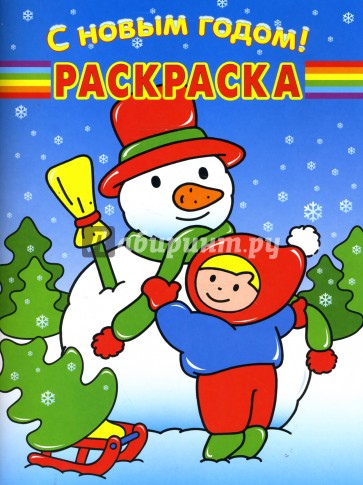 Раскраска с картинками на новогоднюю тему. На каждой странице - картинка для раскрашивания и короткий рассказ, комментирующий происходящее на картинке.