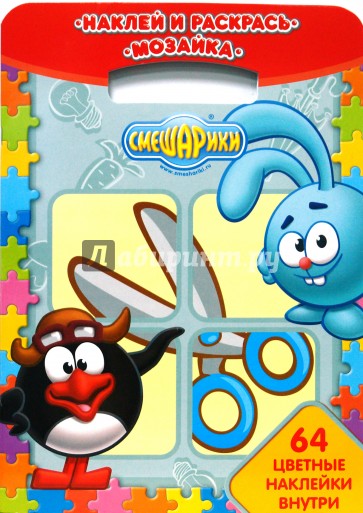 Внимание! Внимание! Смешарики объявляют конкурс "Разгадай загадку". Для участия в конкурсе вам понадобятся: коробка цветных карандашей, кулек смекалки и всего одна раскраска. Каждая страница - это шаг к победе. Отгадайте загадку, приклейте наклейку-отгадку и раскрасьте картинку. Тот, кто сделает все быстро и без ошибок, объявляется победителем и получает почетное звание "Главный Смекальщик Страны Смешариков".