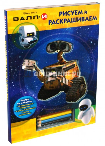 Маленький робот Валл-И целыми днями бродит по планете Земля и прессует мусор в кубики. Но, может быть, его ждет совсем другое предназначение, яркое и интересное? Включайся в игру! Помоги Валл-И узнать Вселенную! Нарисуй Валл-И, Еву, Д-Ока и "Аксиому". Возьми трафареты и цветные карандаши, прочитай наши советы - и твои рисунки оживут!