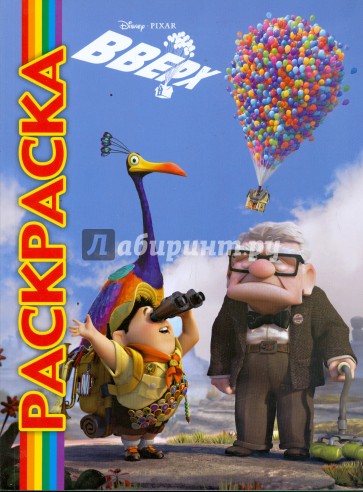 Раскраска по мотивам мультфильма "Вверх". Каждая страница - картинка из мультфильма с веселыми комментариями.