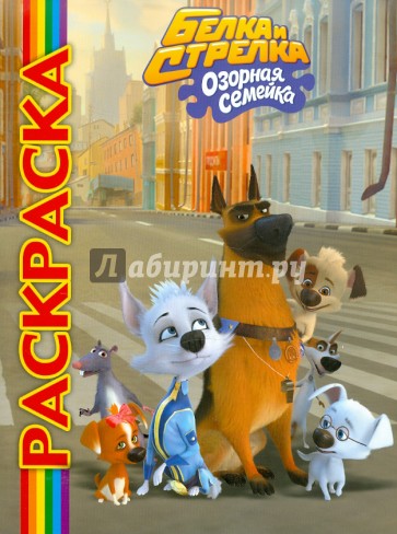 Раскраска по мотивам мультфильма "Белка и Стрелка". Каждая страница - картинка из мультфильма с комментариями.