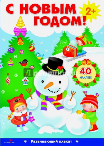 С Новым Годом! Развивающий новогодний плакат с наклейками на постоянном клее . Приближается Новый год, а значит самое время для игр и развлечений. Дополни плакаты яркими наклейками. Кого ты приклеишь на горку, а кого на каток? Укрась ёлку игрушками. Как ты думаешь, чего не хватает этому важному снеговику? Для кого детки сыплют зернышки и крошки? А теперь пора нарядным деткам встать в хоровод вокруг ёлочки. Куда ты приклеишь Деда Мороза и Снегурочку? Увлекательная игра начинается - праздничное настроение гарантировано!