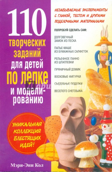 В книге представлена целая коллекция интереснейших заданий, которые развивают у детей воображение, художественный вкус и моторные навыки. Ребята смогут сами (или с вашей помощью) сделать тесто для лепки из соли и сахара, крахмала, кукурузных или овсяных хлопьев, из хлеба, кофе, корицы, желатина, ваты, мыла, шампуня, зубной пасты, клея и других подручных материалов, которые найдутся в каждом доме. А потом соорудить свои неповторимые шедевры (некоторые из них вы даже сможете съесть всей семьей!). Благодаря этому простому и понятному пособию ваши дети будут с огромным удовольствием исследовать, экспериментировать, раскрывать свой творческий потенциал и наслаждаться полученными произведениями искусства.