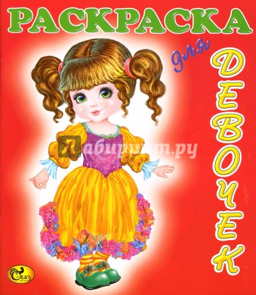 Раскраска для девочек. На каждом развороте две картинки - одна раскрашенная, а другая - для самостоятельной работы по образцу. Картинки для раскрашивания - куклы в различных нарядах.